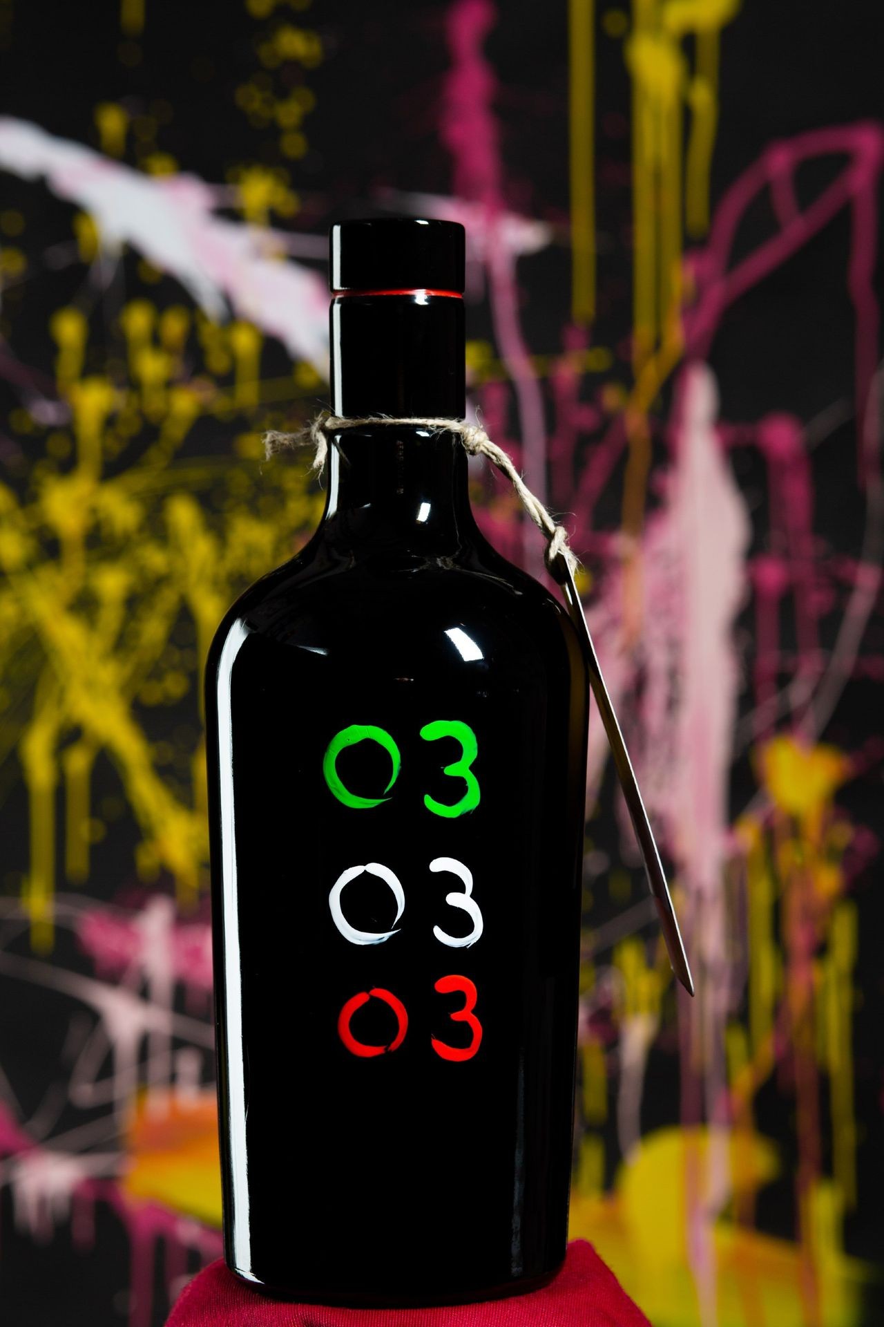 A giovani artisti emergenti, vengono commissionate 303 bottiglie numerate, ognuna diversa dall'altra. È in questo esatto momento che l'Arte espressa con i pennelli incontra l'Artigianato della produzione di EVO d'Eccellenza.